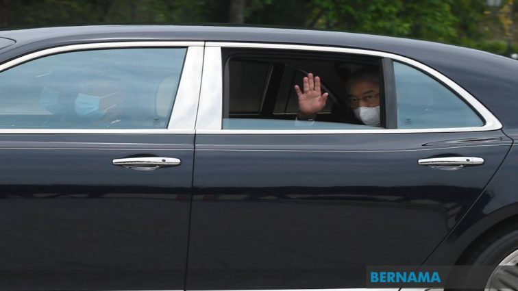 Kenderaan rasmi membawa Yang di-Pertuan Agong, Al-Sultan Abdullah Ri’ayatuddin Al-Mustafa Billah Shah memasuki pintu utama Istana Negara pada 12.20 tengah hari.
