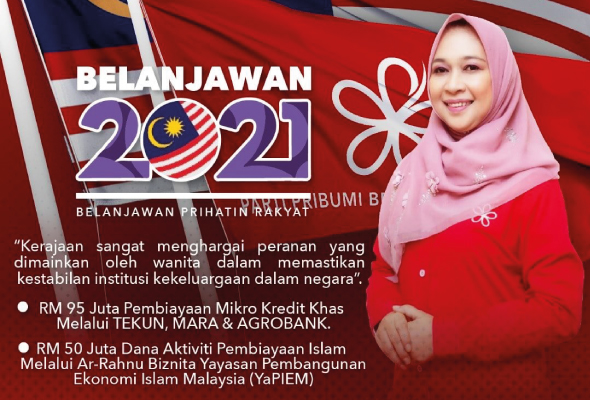 Beliau berucap pada pembentangan Belanjawan 2021 di Parlimen semalam berkata selain peruntukan itu, Tengku Zafrul umumkan sebanyak RM50 juta dana pembiayaan Islam melalui Ar-Rahnu Biznita Yayasan Pembangunan Ekonomi Islam Malaysia (YaPIEM) yang bertujuan memperkasa golongan wanita dalam bidang keusahawanan.