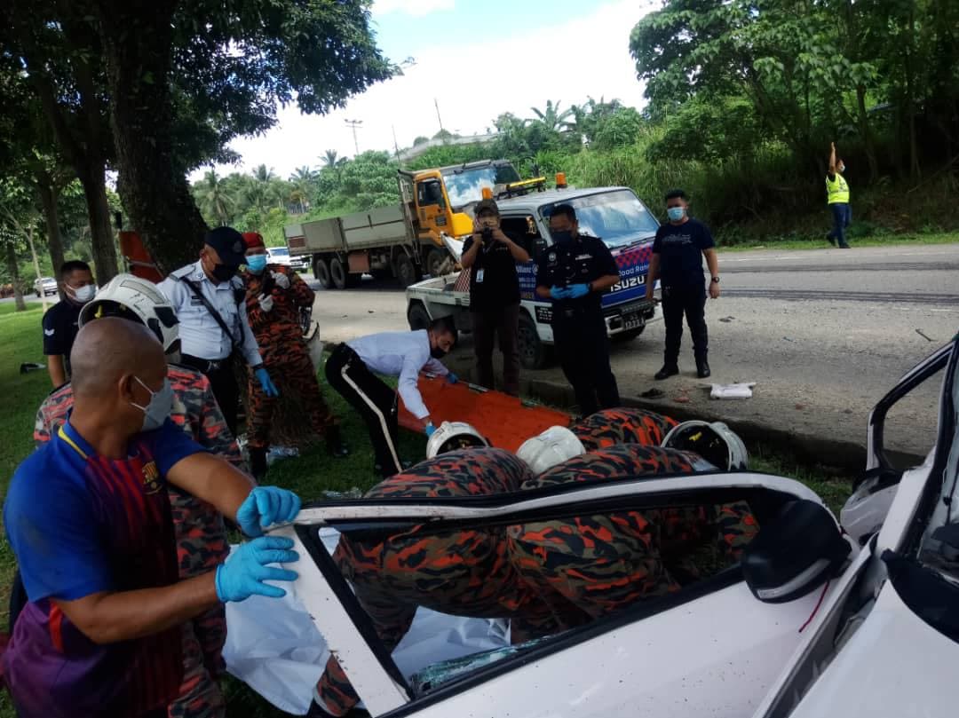 SANDAKAN: 3 penumpang kereta maut dalam kemalangan yang membabitkan sebuah kenderaan di Jalan Lintas Sibuga, Sandakan, hari ini.