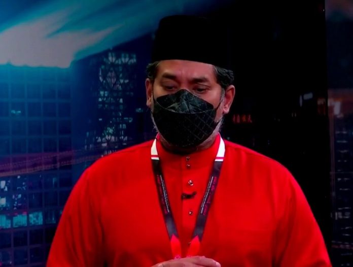 Menteri Kesihatan, Khairy Jamaluddin semasa mengadakan sidang media pada Perhimpunan Agung UMNO (PAU) 2021 di Pusat Dagangan Dunia Kuala Lumpur, hari ini berkata KKM mahu melihat implikasi daripada keputusan kerajaan membuka sempadan negara bermula 1 April ini.