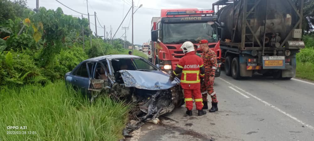 SANDAKAN: Sebuah kemalangan jalan raya berlaku melibatkan pertembungan sebuah kereta dengan kenderaan Lori Petronas di Kota Emas Oil Batu 19, Sandakan hari ini.