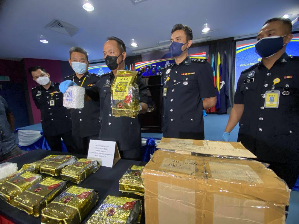 “Seberat 10.4 kilogram (kg) dadah jenis syabu yag dimuatkan dalam bungkusan teh ditemukan dalam kotak berkenaan,” katanya dalam sidang media hari ini.