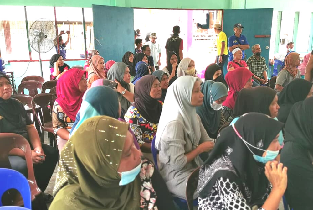Penduduk Pulau Gaya mendengar taklimat dari Pihak JKM dan UPMM Tanjung Aru.